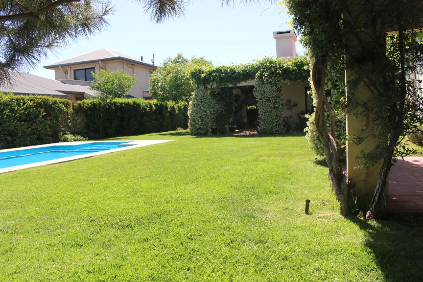 La casa consta de: PLANTA BAJA: Hall de acceso; Estar diario; Living comedor principal con hogar a leña; Tres dormitorios en planta baja, uno de ellos en suitte con vestidor y baño. Baño secundario completo (para los otros dos dormitorios), baño de recepcion; Dependencia de servicios: Lavandería, Habitación y baño de servicio, deposito. Dos amplias galerías con pérgolas, Jardín, Piscina con equipo de filtrado, Cochera doble.