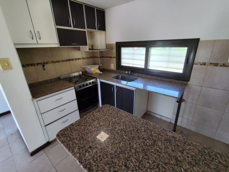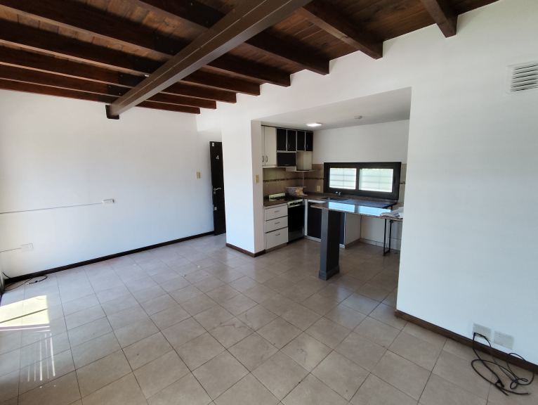1° Piso por Escalera: Living Comedor con Cocina dividido por un desayunador, balcón amplio, Patio de servicio con tendedero.