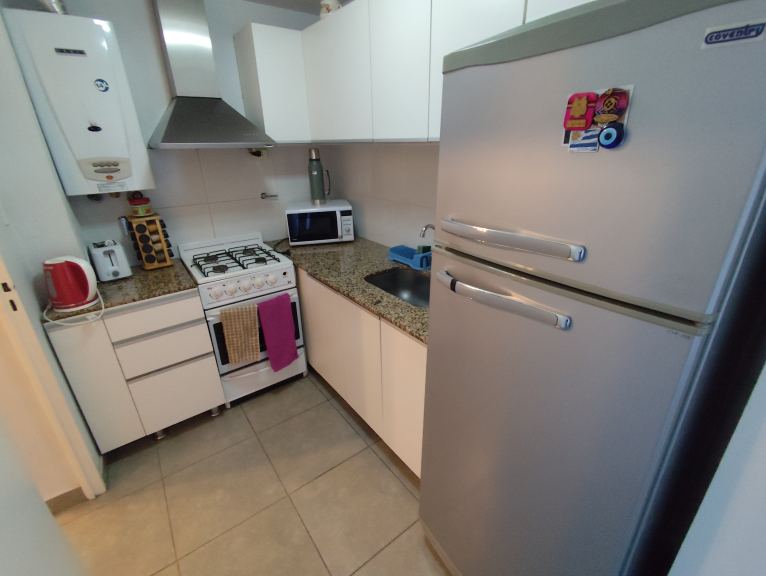 Cocina con mesada en granito, bajo mesada y alacenas, Lavandería